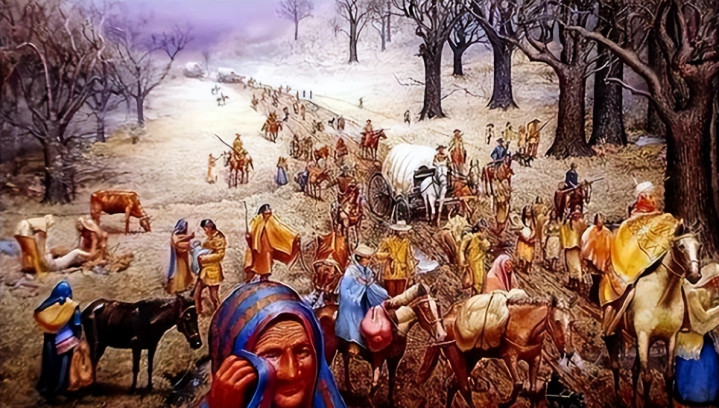 北美的命运更惨烈。17世纪,英国殖民者踏上新英格兰,火枪射向试图抵抗的部落,村庄化为灰烬。19世纪,美国政府推动“西进运动”,颁布《印第安人迁移法案》,强迫切罗基等部落迁往保留地。数千人跋涉在冰雪覆盖的“泪水之路”上,饿死、冻死,尸骸被风雪掩埋。